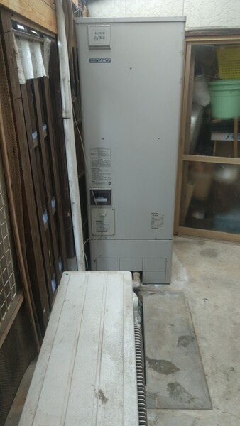 築43年 電気温水器設置後に物置小屋を建てたのでドアを通らない